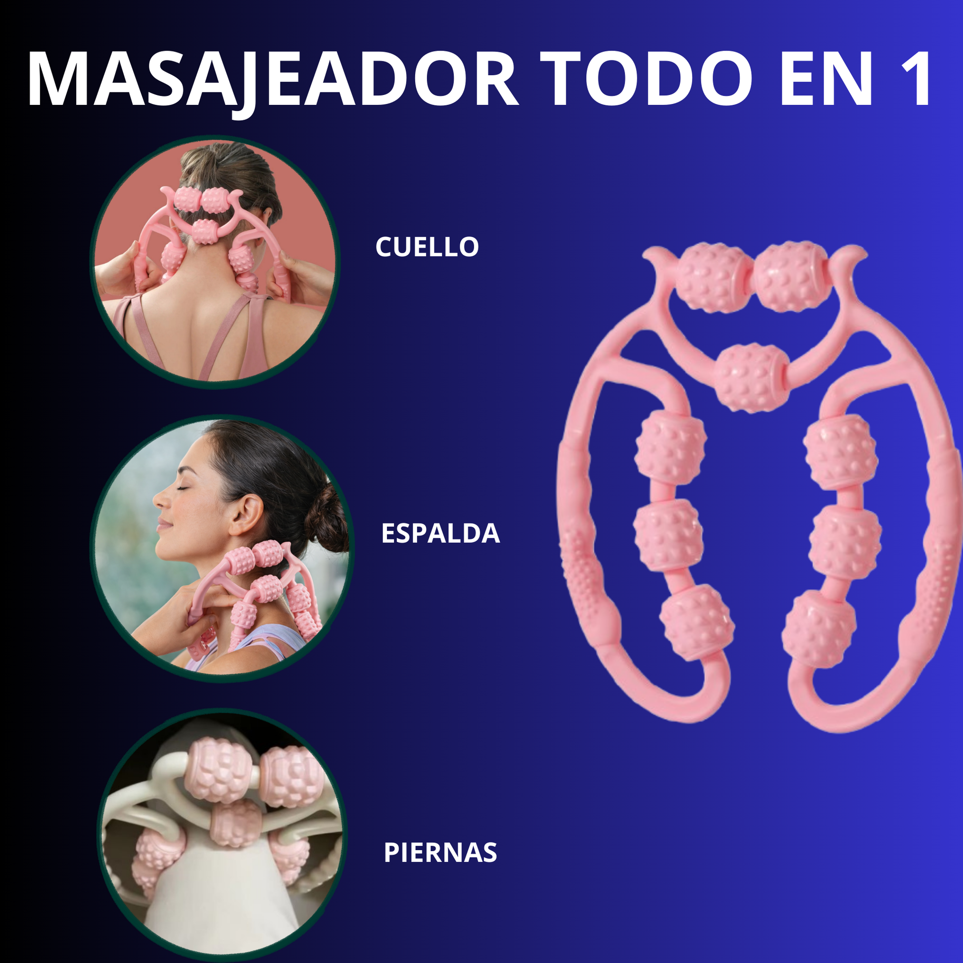 Con el Masajeador de Piernas de 9 Rodillos relaja músculos tensos, estimula la circulación y recupera la sensación de ligereza en minutos. Su diseño ergonómico con 9 rodillos de masaje profundo activa la piel y los músculos para brindar alivio después del ejercicio, largas caminatas o un día intenso.